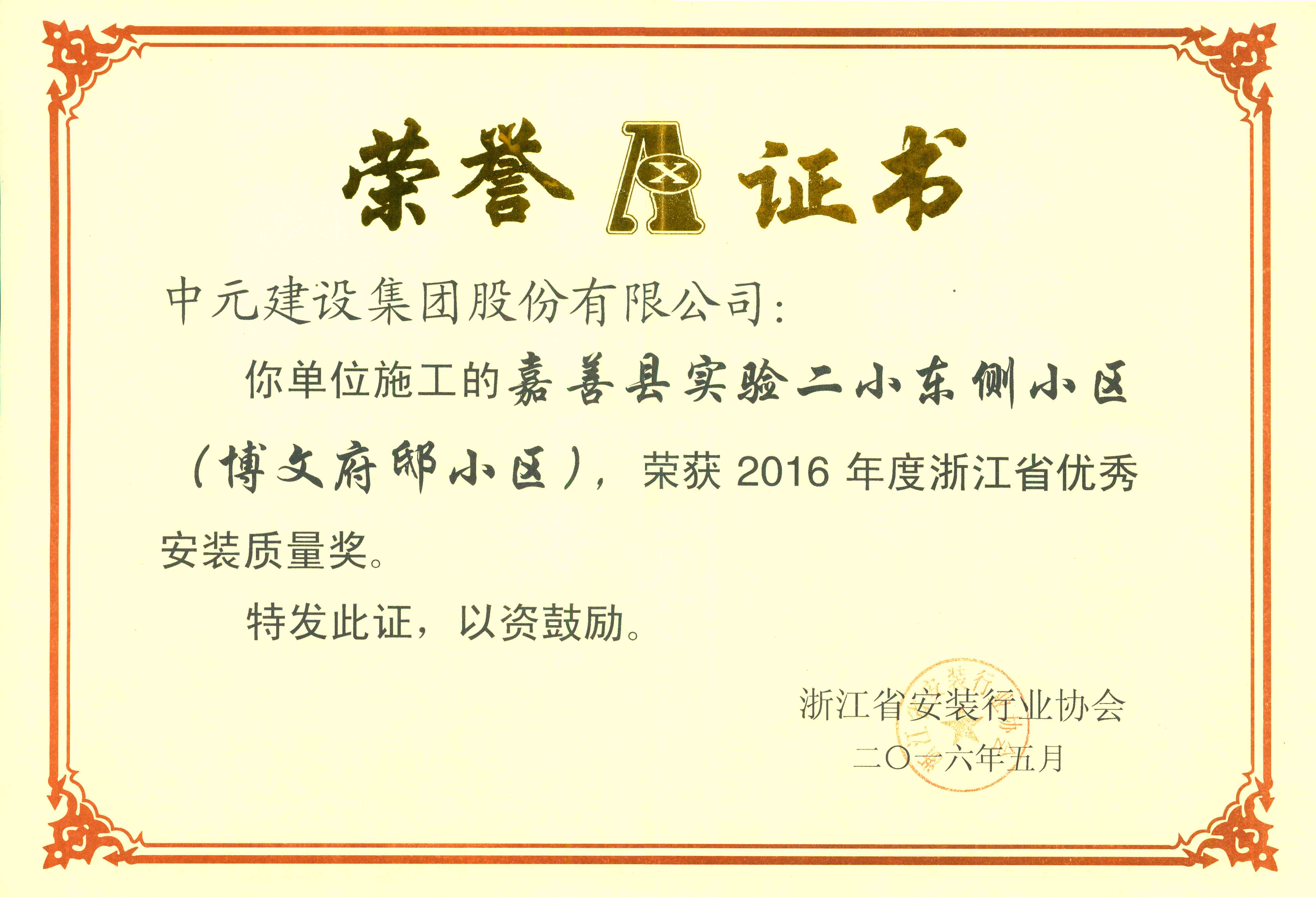 2016年度浙江省优秀安装质量奖 嘉善县实验二小东侧小区(博文府邸小区)(2016年)