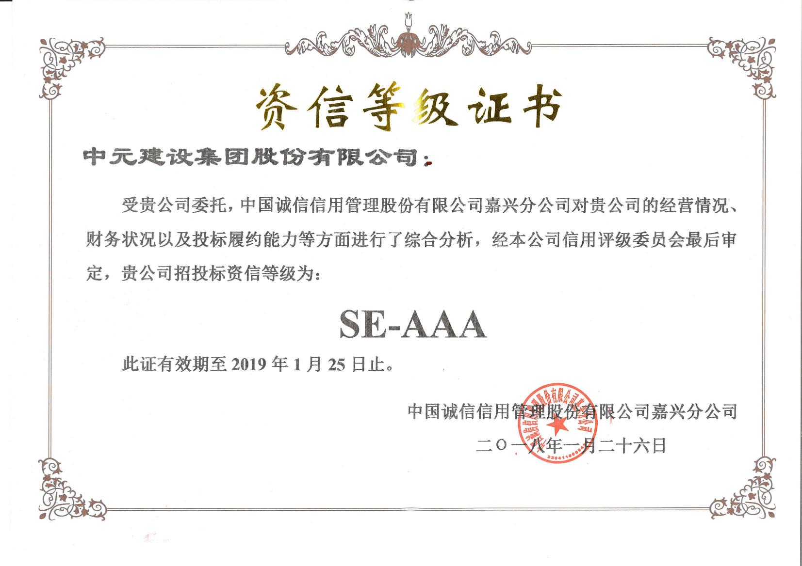 企业信用等级证书(AA)2017.6.23至2018.6.22
