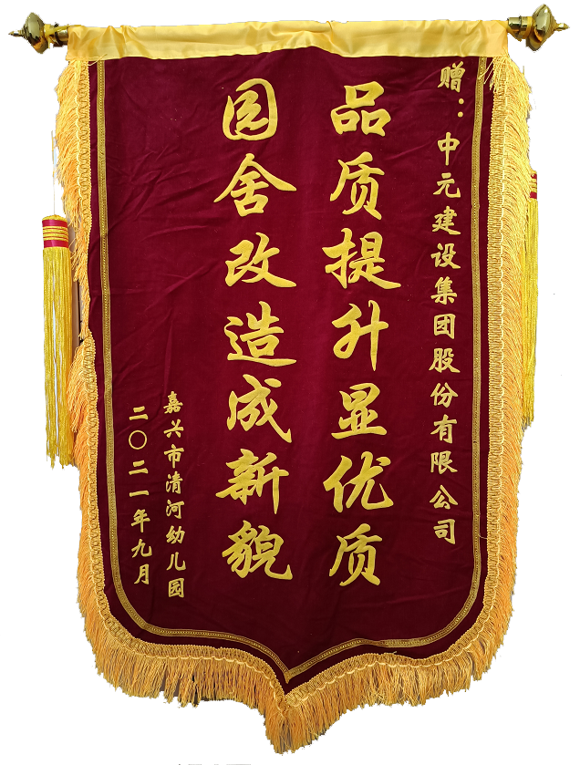 嘉兴市清河幼儿园在本项目改造范围之内,该幼儿园承担本小区和临近社区的学龄前儿童的入学。由于改造时间紧、任务重,园方对秋季入学的时间和施工质量有所顾虑。项目部得知这一消息后,主动和园领导联系,承诺保质保量按期完成幼儿园改造任务。在施工过程中,项目部组织精兵强将,科学安排精心施工,提前完成了改造任务。当美丽的校舍在新学期的开学迎接每一位小朋友时,园方特地制作了一面写着:“品质提升显优质,园舍改造成新貌”的锦旗赠送项目部。俗话说:金杯银杯不如老百姓的口碑,这面锦旗是对公司最好的褒奖与肯定。