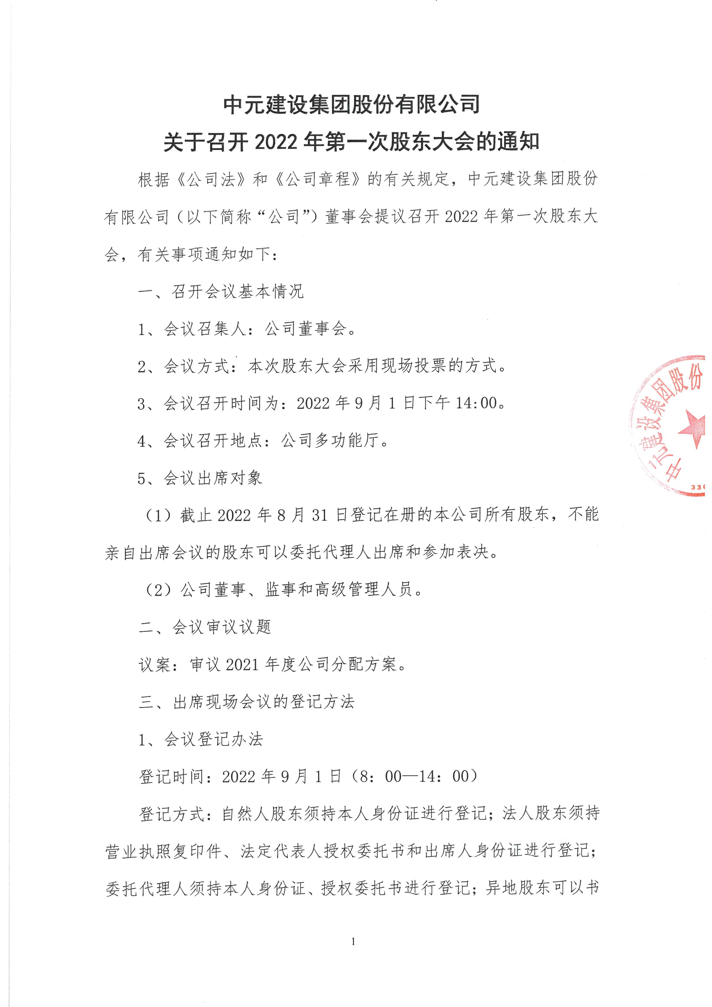 365英国上市建设集团股份有限公司关于召开2022年第一次股东大会的通知