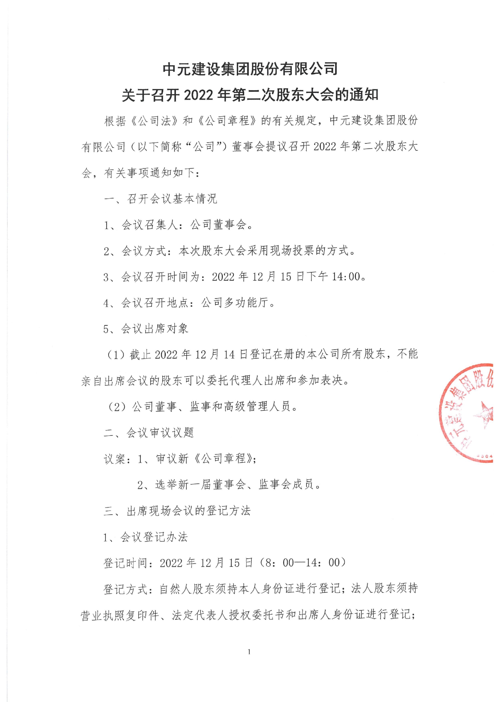 365英国上市建设集团股份有限公司关于召开2022年第二次股东大会的通知
