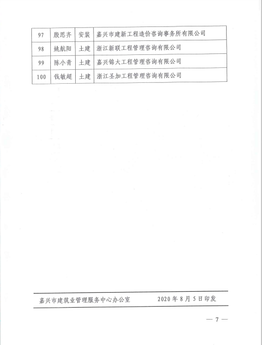 关于公布嘉兴市工程造价技能竞赛初赛成绩前100名名单的通知